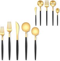 24pcs צלחת זהב נירוסטה סכו "ם סט סכו" ם סכו "ם סכין ארוחת ערב מחמיאים
